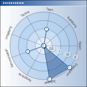 | Eigener Ratschlag | Notfall-Ruf-Procedere überdenken und geeignete Meldewege programmieren, da gelegentlich abends kein Oberarzt mehr im Haus ist und der aufsichtsführende Facharzt im Nachbarsaal bislang nicht informiert wird. Eine Ausweitung der angefunkten Kollegen ist auch mit Problemen verbunden (wenn viele angefunkt werden - wer läuft dann?) | |||