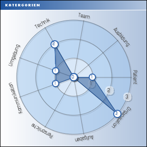 Hauptkategorien· 1 Analyseeinheit aus der Kategorie: PatientAlle Kategorien Kenne Deine Arbeitsumgebung (Technik und Organisation) · Beachte und verwende alle vorhandenen Informationen · Kommuniziere sicher und effektiv - sag was Dich bewegt · klinischer Zustand, Bedingungen · organisationale Strukturen · Extern bedingte / importierte Risiken · Sicherheitskultur · geschriebene Kommunikation · Zeitfaktoren · Intaktheit der AusrĂĽstung · Bedienbarkeit, Brauchbarkeit · | ||