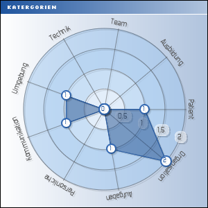 Hauptkategorien· 1 Analyseeinheit aus der Kategorie: PatientAlle Kategorien Beachte und verwende alle vorhandenen Informationen · Verhindere und erkenne Fixierungsfehler · Habe Zweifel und überprüfe genau (Double check, nie etwas annehmen) · klinischer Zustand, Bedingungen · klinischer Zustand, Bedingungen · organisationale Strukturen · organisationale Strukturen · Sicherheitskultur · Sicherheitskultur · Leitlinien, Prozeduren und Vereinbarungen · Leitlinien, Prozeduren und Vereinbarungen · geschriebene Kommunikation · geschriebene Kommunikation · Zeitfaktoren · Zeitfaktoren · | ||