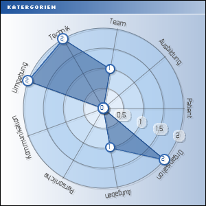 | Eigener Ratschlag | Stärkung der Pflege in der Personalstärke zur besseren Unterstützung und Rückübernahme früher ausgeführter Funktionen. Einheitliche Schrankbelegung auf den einzelnen Stationen | |||