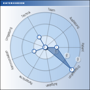 Hauptkategorien· 1 Analyseeinheit aus der Kategorie: PatientAlle Kategorien Beachte und verwende alle vorhandenen Informationen · Habe Zweifel und überprüfe genau (Double check, nie etwas annehmen) · Lenke Deine Aufmerksamkeit bewusst · Mobilisiere alle verfügbaren Ressourcen (Personen und Technik) · Kommuniziere sicher und effektiv - sag was Dich bewegt · Achte auf gute Teamarbeit - andere unterstützen und sich koordinieren · klinischer Zustand, Bedingungen · klinischer Zustand, Bedingungen · Prioritäten, Fokus, strategische Ausrichtung · Extern bedingte / importierte Risiken · Extern bedingte / importierte Risiken · Sicherheitskultur · Sicherheitskultur · verbale Kommunikation · verbale Kommunikation · Intaktheit der Ausrüstung · Intaktheit der Ausrüstung · | ||