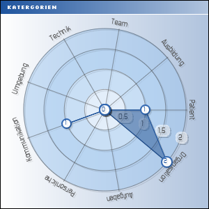 Hauptkategorien· 1 Analyseeinheit aus der Kategorie: PatientAlle Kategorien Beachte und verwende alle vorhandenen Informationen · Habe Zweifel und überprüfe genau (Double check, nie etwas annehmen) · Lenke Deine Aufmerksamkeit bewusst · Verteile Die Arbeitsbelastung (10-Sekunden-für-10-Minuten) · klinischer Zustand, Bedingungen · organisationale Strukturen · Prioritäten, Fokus, strategische Ausrichtung · Prioritäten, Fokus, strategische Ausrichtung · verbale Kommunikation · | ||