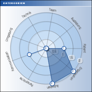 Hauptkategorien· 1 Analyseeinheit aus der Kategorie: PatientAlle Kategorien Kenne Deine Arbeitsumgebung (Technik und Organisation) · Beachte und verwende alle vorhandenen Informationen · Habe Zweifel und überprüfe genau (Double check, nie etwas annehmen) · klinischer Zustand, Bedingungen · klinischer Zustand, Bedingungen · Prioritäten, Fokus, strategische Ausrichtung · Prioritäten, Fokus, strategische Ausrichtung · Sicherheitskultur · Sicherheitskultur · Leitlinien, Prozeduren und Vereinbarungen · Leitlinien, Prozeduren und Vereinbarungen · Entscheidungshilfen · geschriebene Kommunikation · | ||