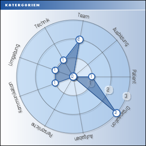 Hauptkategorien· 1 Analyseeinheit aus der Kategorie: PatientAlle Kategorien Kenne Deine Arbeitsumgebung (Technik und Organisation) · Beachte und verwende alle vorhandenen Informationen · Habe Zweifel und überprüfe genau (Double check, nie etwas annehmen) · Lenke Deine Aufmerksamkeit bewusst · Mobilisiere alle verfügbaren Ressourcen (Personen und Technik) · Re-evaluiere die Situation immer wieder (wende das 10-Sekunden-für-10-Minuten-Prinzip an) · Achte auf gute Teamarbeit - andere unterstützen und sich koordinieren · klinischer Zustand, Bedingungen · klinischer Zustand, Bedingungen · Prioritäten, Fokus, strategische Ausrichtung · Prioritäten, Fokus, strategische Ausrichtung · Extern bedingte / importierte Risiken · Extern bedingte / importierte Risiken · Sicherheitskultur · Sicherheitskultur · verbale Kommunikation · verbale Kommunikation · Arbeitsplatzgestaltung · Positionierung, Aufbewahrung · Positionierung, Aufbewahrung · Rollenverhalten und -verständnis · Teamkultur · Teamkultur · | ||